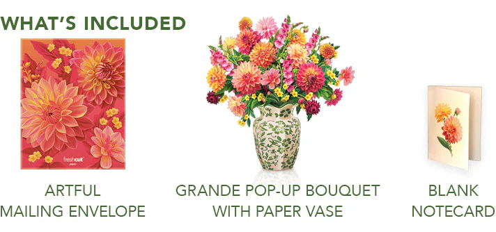Our Grande Dahlia Sunrise Bouquet is bright, cheerful, and reflects every shade of the sunrise from all angles with lush tangerine, cheerful coral, and playful pink blooms that instantly lift the mood. Elegant and joyful, it's a beautiful way to share warmth, happiness and sunshine.